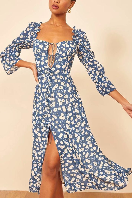 CLARA - Square-Neck Drawstring Floral Dress